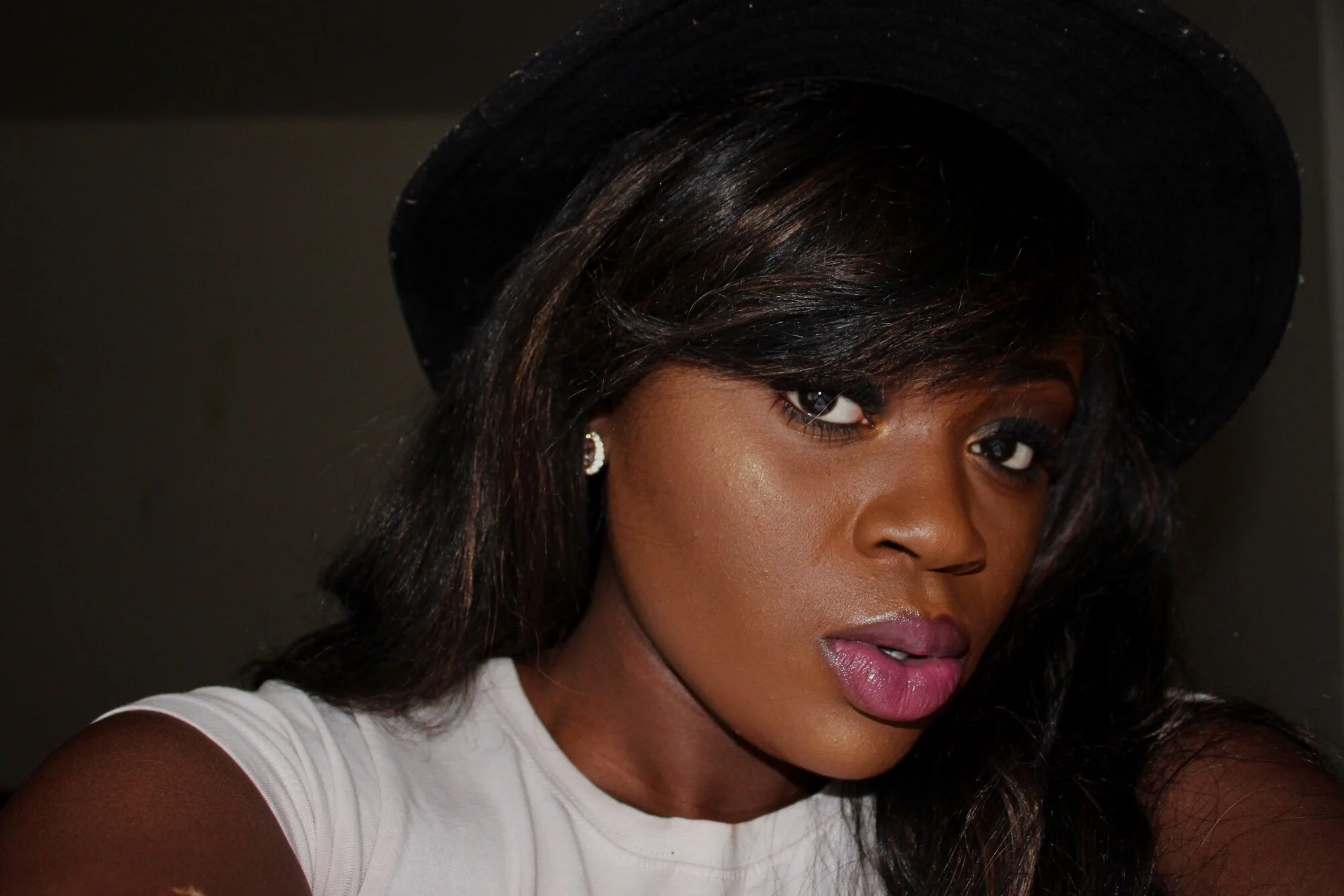 For my Lips, I used Yves Saint Laurent Lipstick paired with M.A.C Lip Pencil in Purple to line up corners. My highlight and contour I used M.A.C Gold Deposit on my cheekbone, top of the upper lip, chin and nose. For contour, I used M.A.C Sculpting Powder in Deep Dark.